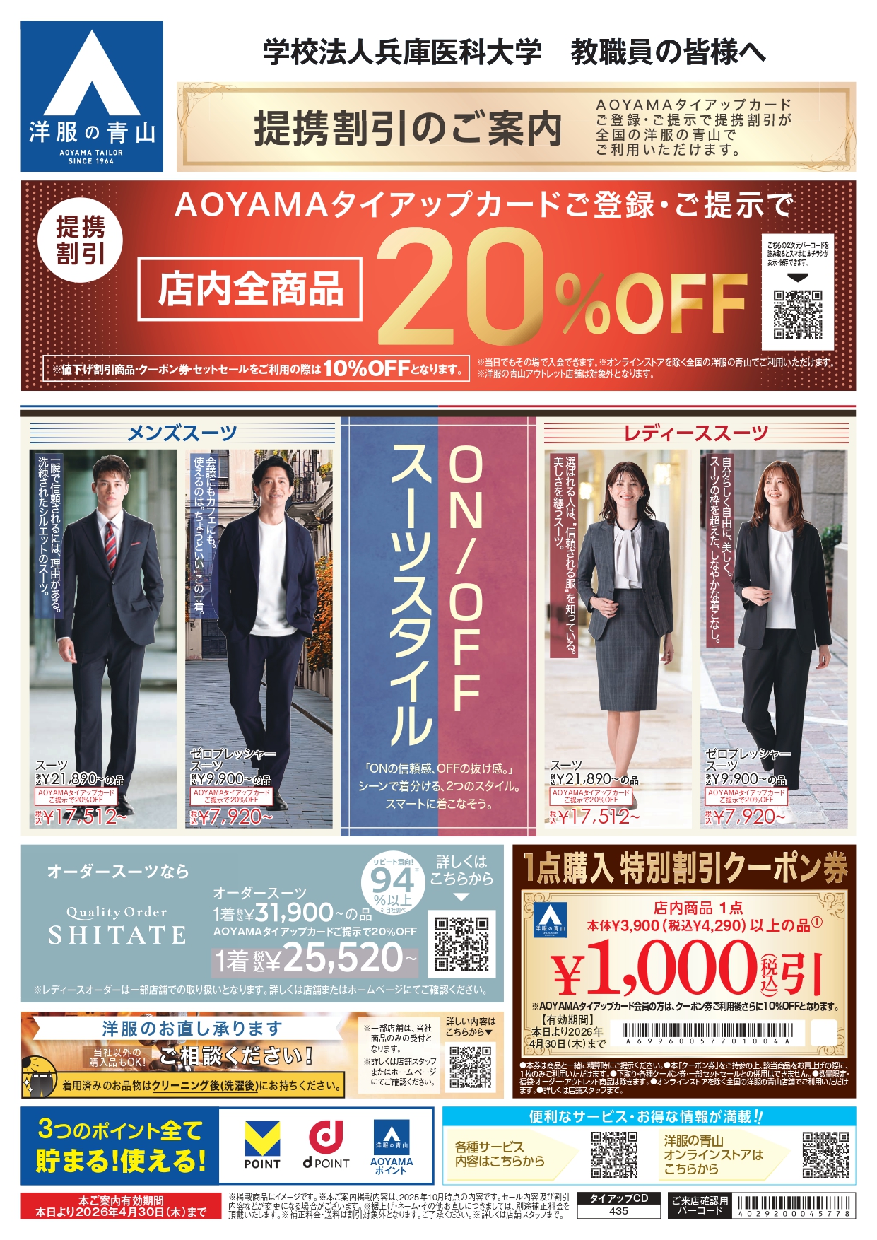 洋服の青山より学生・教職員の皆様へ 提携割引のご案内です。