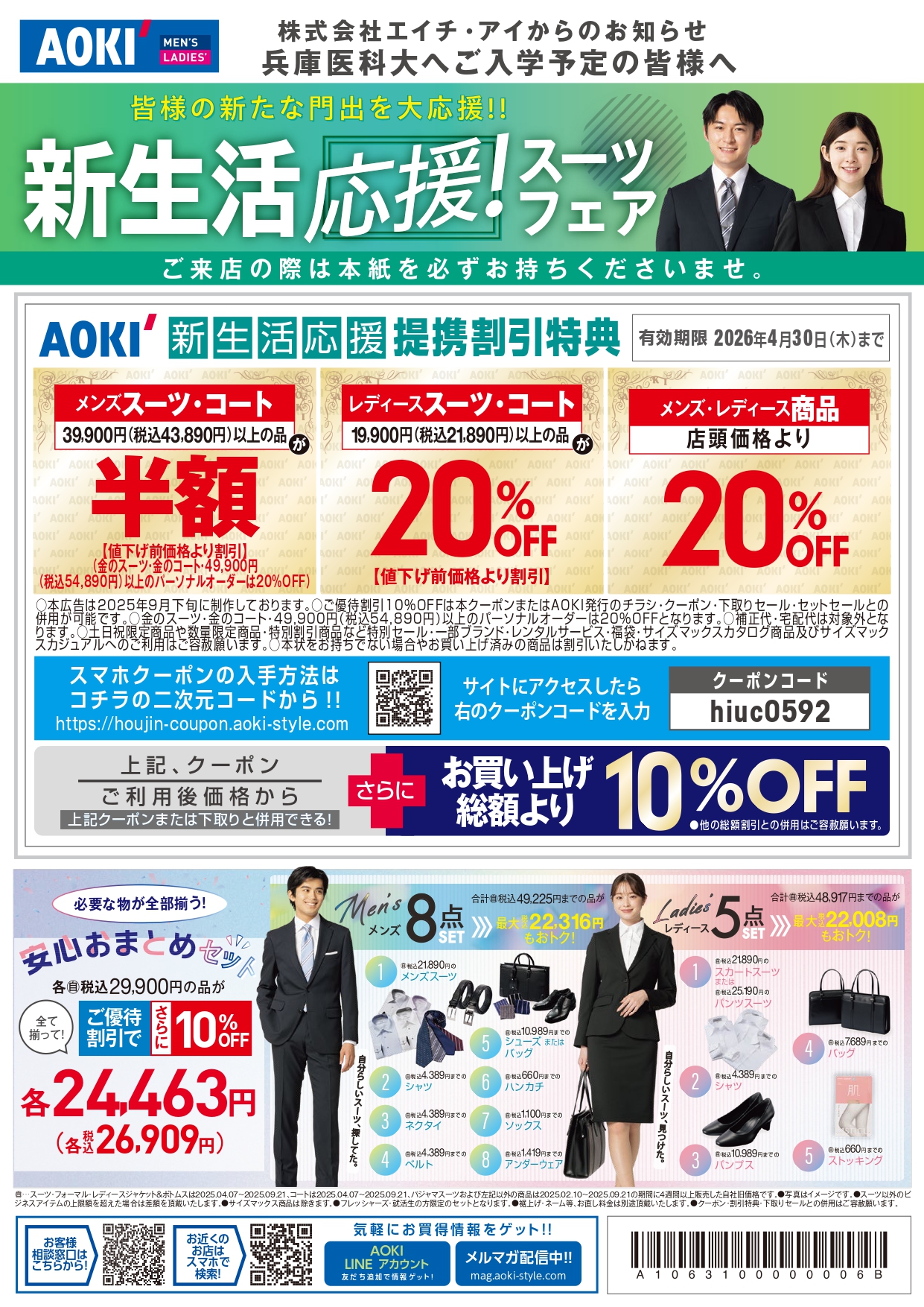 AOKIより学生・教職員の皆様へ 提携割引のご案内です。